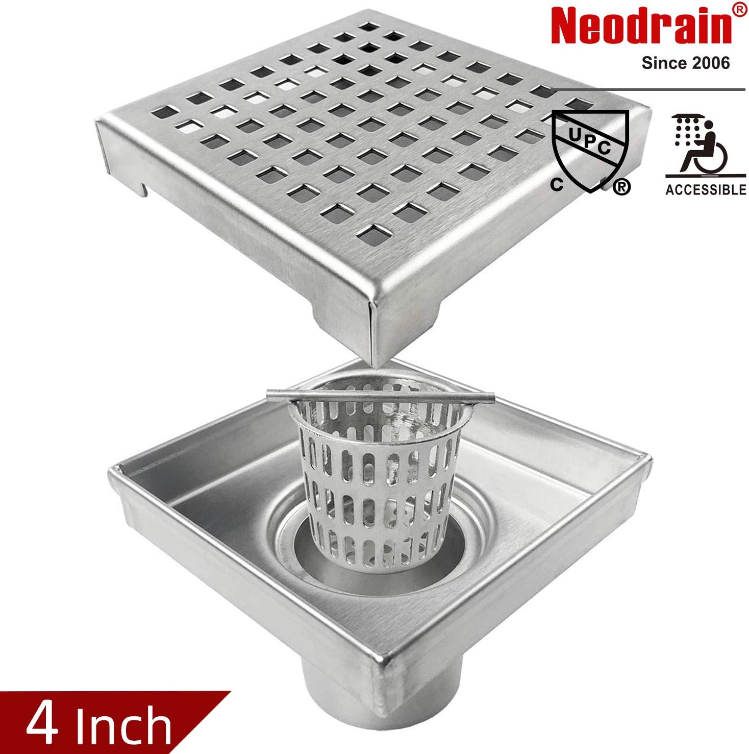 Neodrain Square Shower Drain with Removable Quadrato Pattern Grate, 4-Inch, eBay