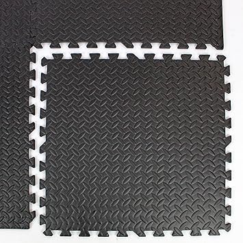 BLACK INTERLOCKING SOFT FOAM EXERCISE FLOOR MATS GYM GARAGE HOUSE
