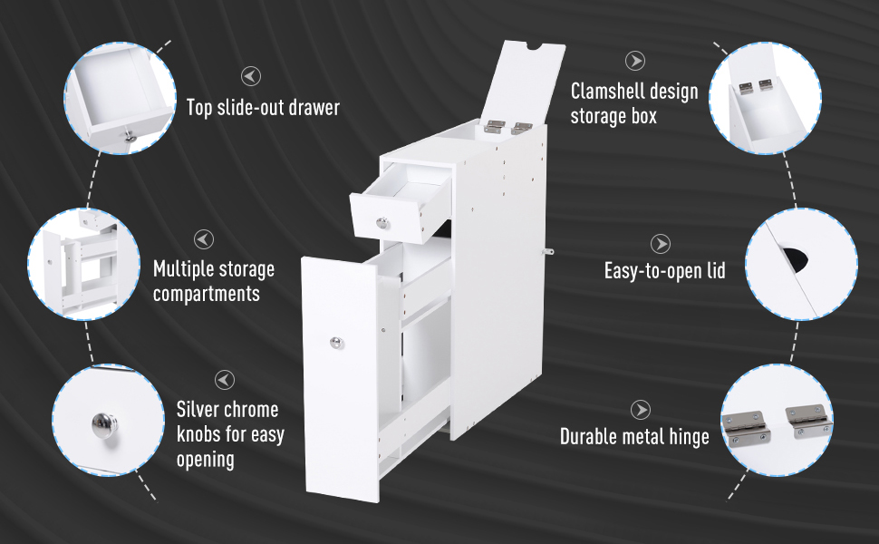 HOMCOM Slim Floor Cabinet Narrow Wooden Storage with Drawers Bathroom White eBay