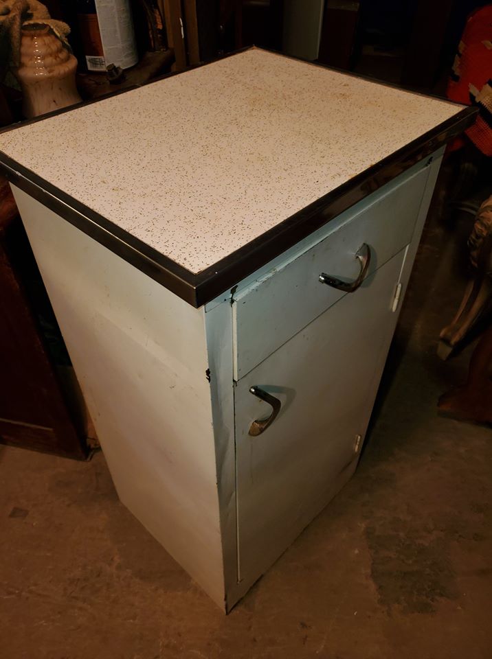 Vintage 50’s Metal Kitchen Cabinet w/ drawer Counter top – Long Valley Traders