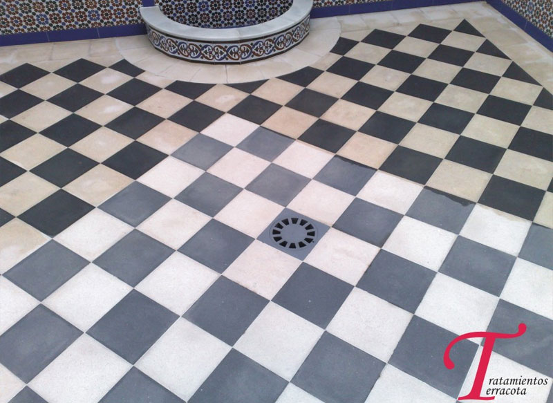 Cleaning and treatment of cement tiles