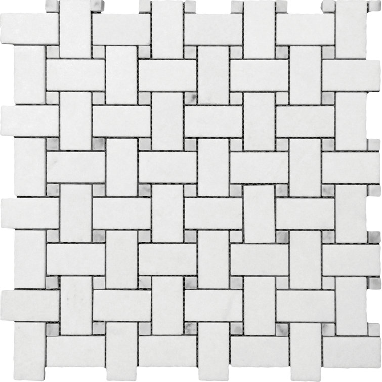 Belluno Designs Thassos 1" x 2" Marble Basketweave Mosaic Wall & Floor
